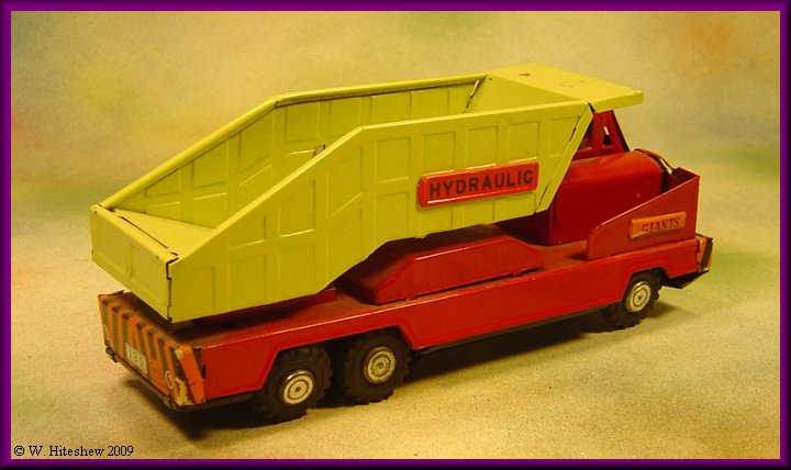 NOTES-------------Interesting lithographed large friction dump truck with dumping body. Produced by Toymaster, Japan. 8-1/4" long.