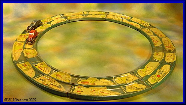 NOTES------------Beautiful and rare circular Marx speedway. These were marketed as unliscensed Worlds Fair Mementos in 1939.