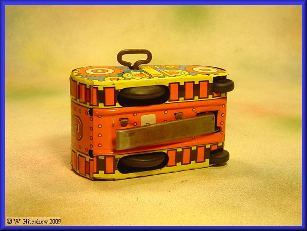 CONDITION----EXCELLENT with a HITCH. Glossy clean litho shows only the slightest, most minute signs of playwear. Very fine example but motor spring is sprung. This is not difficult to repair but will leave telltale signs of having been opened.