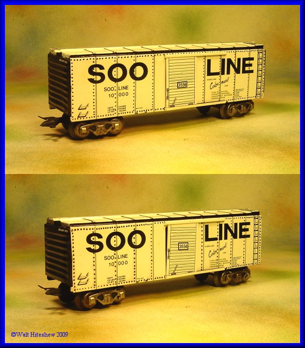 NOTES------------Beautiful white set released by Marx Trains* about 1994. Marx sold extra 6" pole cars for this set which I did not buy because I didn't think they complimented the set. I made a Soo Line Colormart Boxcar as my extra car and it will be included with the set.