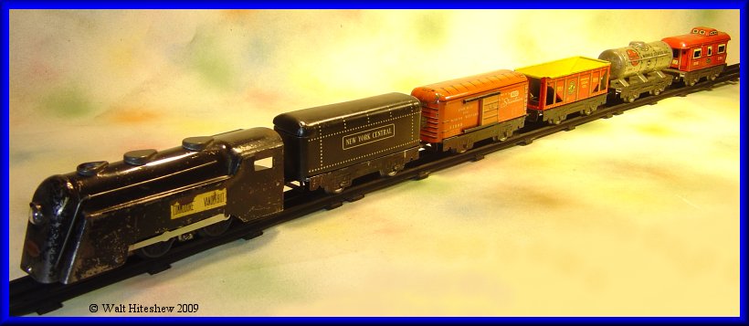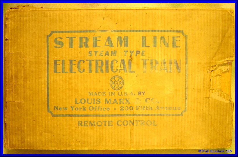 CONDITION-----VERY GOOD. Engine shows more playwear than rest of set. Hard-to-find orange CNW boxcar has some discoloration. Box is water damaged. Both ends missing from top and bottom is water damaged on one end.