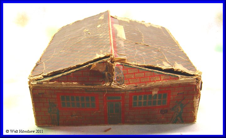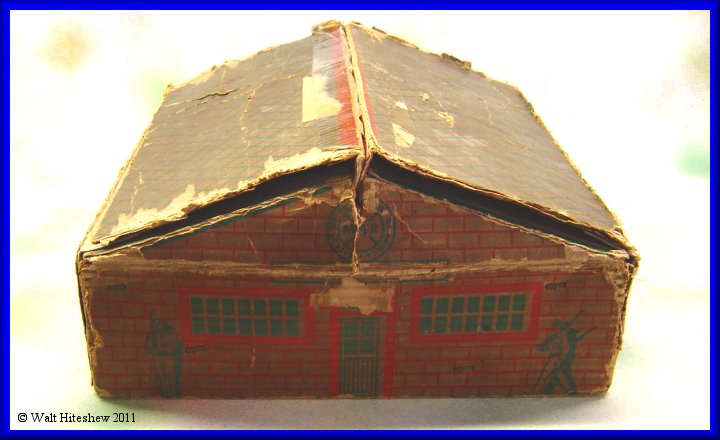 CONDITION-----Set grades between VERY GOOD and EXCELLENT. Train shows light playwear. Flag and pole are there with the original staples. Five of the seven tin soldiers and three of the four original artillary shells (I don't believe the gold one is correct). Track shows light oxidation. The odd piece of steel was in the box. I don't believe it's original with the set but I'm keeping the contents together as found. All-in-all this is one nice set. Very hard to assemble or find complete. The box is all there even though it has seen better days. Don't hesitate to add this to your collection today.