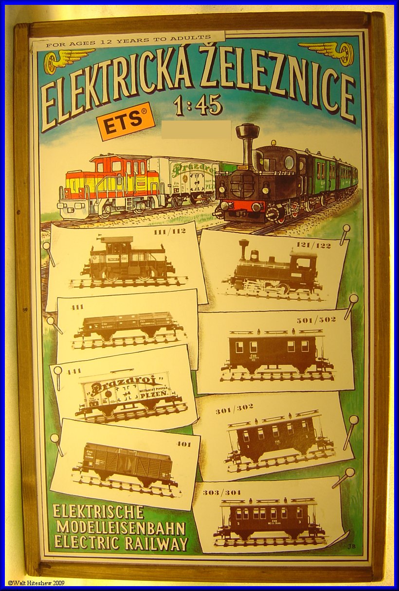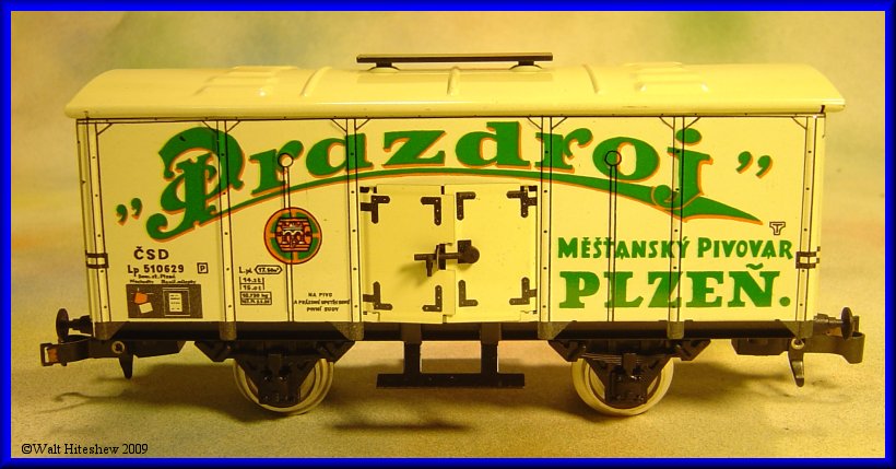 NOTES------Absolutely gorgeous Czech made electric O gauge beer train. This is intended for O gauge track although I bought this new and have never run it. Engine has working pantograph, open frame 5 pole motor, brass gears, and it appears to have directional headlamps (not sure as I have never even energized the set). Set is lithographed tin with only a very few plastic parts, including window panes, insulators, frame springs, and coupler springs. This is quality like hasn't been made in the USA for a very long time! Engine even has a tiny toggle switch on top which I had never noticed until now. I am not excited about selling this set!