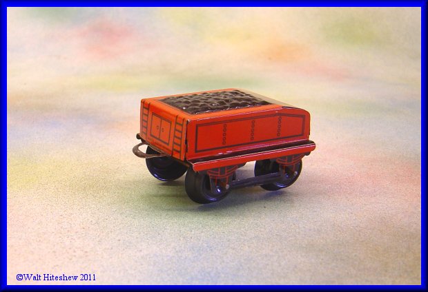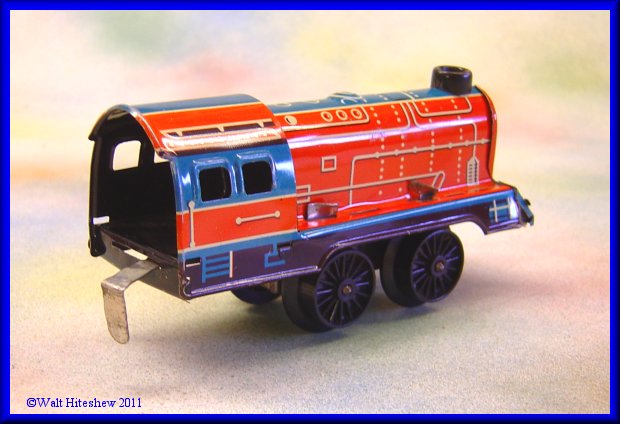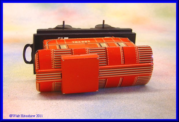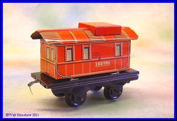 NOTE--------------Beautiful tiny O gauge German set with unusual cupola on caboose. No litho design. Not often seen. Set measures 13" overall.