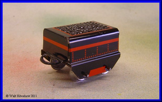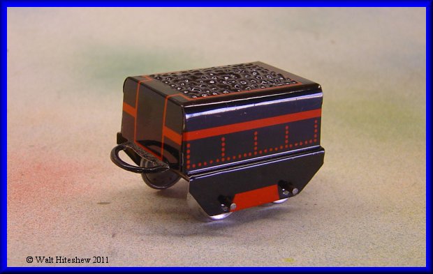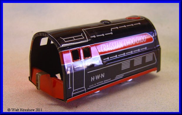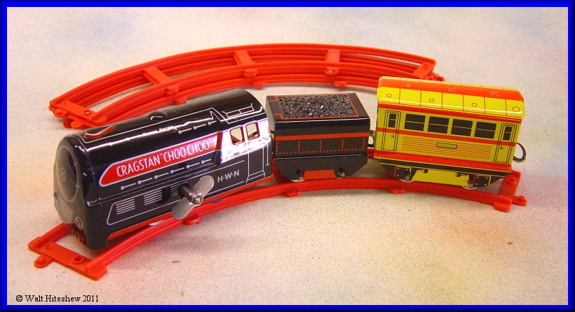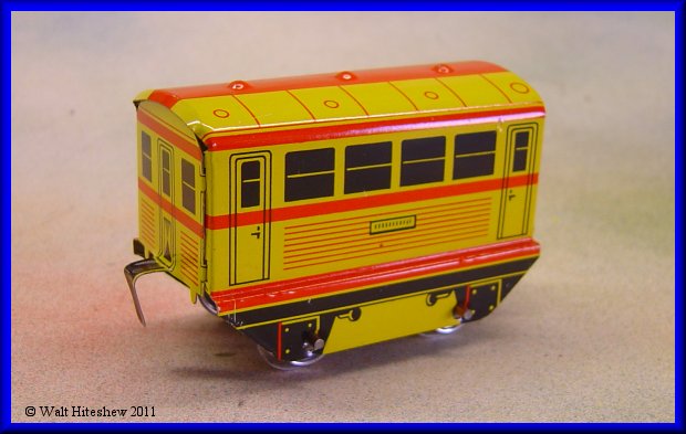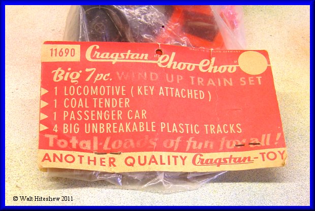 NOTE--------------Adorable little postwar German set with track. Gauge is just smaller than O measuring just over 1-1/8". Set is tiny measuring 9" total. Imported by Cragsten.