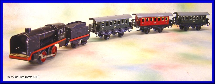 NOTE--------------Beautiful O gauge German set with larger cars. Coaches measure approximately 6".