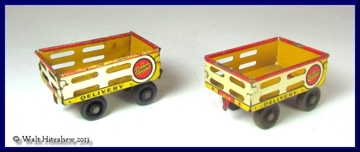 CONDITION-----VERY GOOD PLUS. Truck and first cart show light playwear. Last cart has different wheels and shows some light corrosion inside.