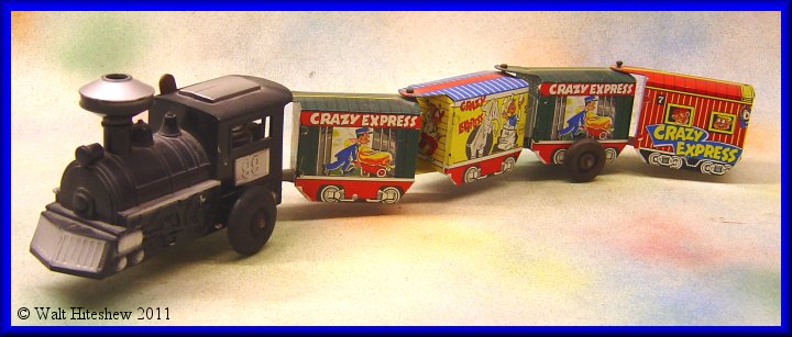 NOTES-------------Battery powered. 17" long, 4 cars, with No. 99 engine. In twenty plus years of collecting Marx trains and toys I have never seen another one of these. My friends, Trip Riley, Tasker Brush, and Dick MacNary had also not seen one!