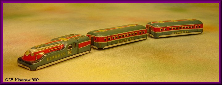 NOTES-------------Cote little table top lithographed tin toy train. 10" long.