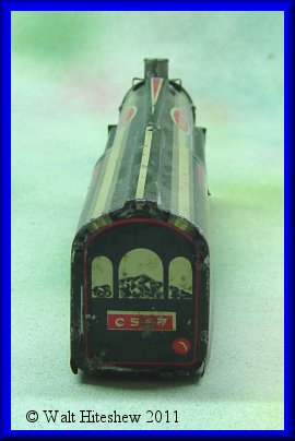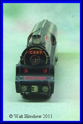 NOTES-------------Interesting friction powered floor toy engine made in Japan. I suspect this is late prewar made during anti-Japanese propaganda period leading up to WWII. Thus, "Peace Line". 7-1/2" long. Very interesting graphics. Logo unknown.
