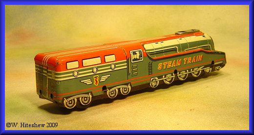 NOTES-------------One of a series of Marusan friction powered floor trains apparently made using the same tooling as the Marx versions, with the addition of a metal bottom. 8-1/2" long.