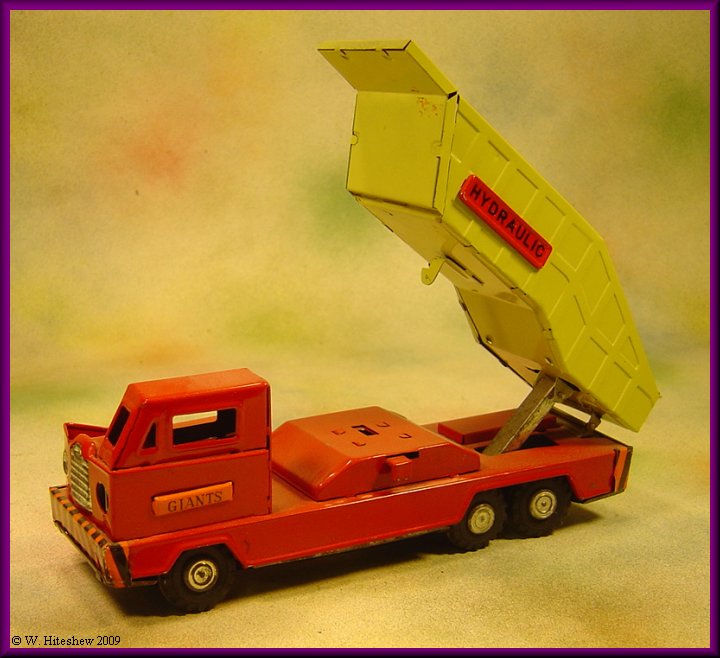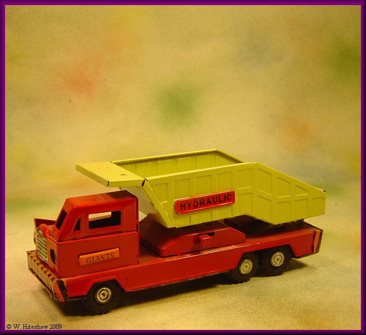 NOTES-------------Interesting lithographed large friction dump truck with dumping body. Produced by Toymaster, Japan. 8-1/4" long.
