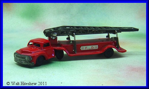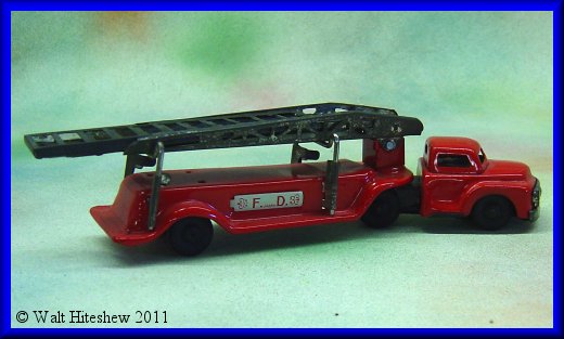 NOTES-------------Very pretty hook and ladder unit. I have an identical example marked linemar. This one unmarked. 8" long. Cab is almost identical to Marx tractor trailer loads.