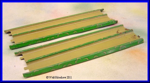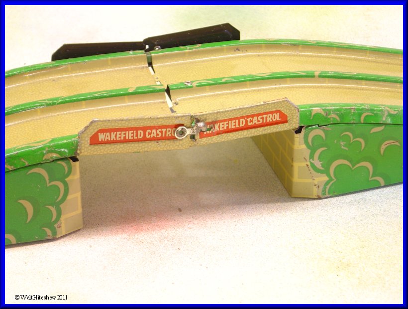 NOTES------------Beautiful clockwork road race set from the fifties with dual lane lithographed track. Made in England. I have alway believed this to be Tippco but now that I am offering it for sale I don't recall why. No markings other than made in England on track and British Made on cars.