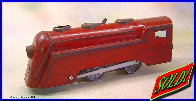 CONDITION-----VERY GOOD MINUS. Complete and original with screw in key. Motor works. Paint looks worse in picture but the engine has been well played with. Still, where are you going to find another example.