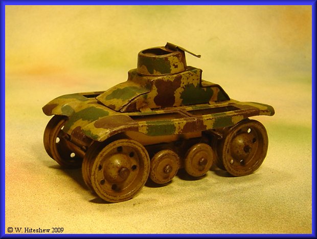 NOTE-------------Well made tin litho tank with sparkling mechanism and hinged turret top. Probably German and my guess would be pre-war.