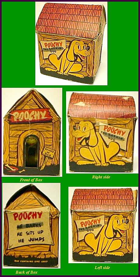 This little plastic dog from the late forties to early fifties is almost as cute as the box