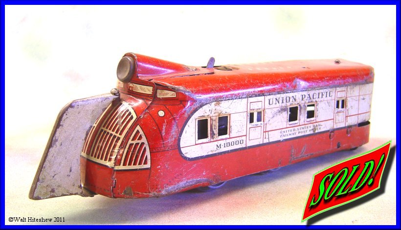 CONDITION-----GOOD. The piece does not appear to have been well stored leading to the belief that work on it was stopped at some point and it was thrown into a barrel or box to be used for other purposes and it remained there until the auctions. Add this to your streamliner collection and have the rarest and most unusual Marx M10000 known!