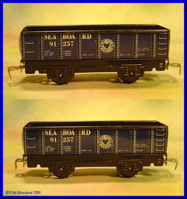 CONDITION-----EXCELLENT. Light playwear throughout. A very nice set with a harder-to-find blue Seaboard gondola. Box top has two torn corners. A very nice clean and hard-to-find set. Interesting that the gondola is in a box rather than a sleeve. I was initially uncertain about the legitimacy of the box but have since found other sets with the boxes.