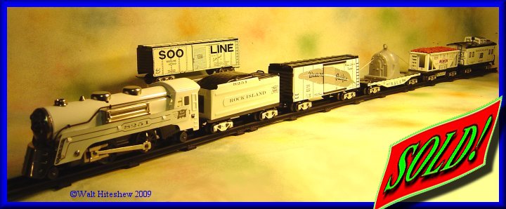 NOTES------------Beautiful white set released by Marx Trains* about 1994. Marx sold extra 6" pole cars for this set which I did not buy because I didn't think they complimented the set. I made a Soo Line Colormart Boxcar as my extra car and it will be included with the set.