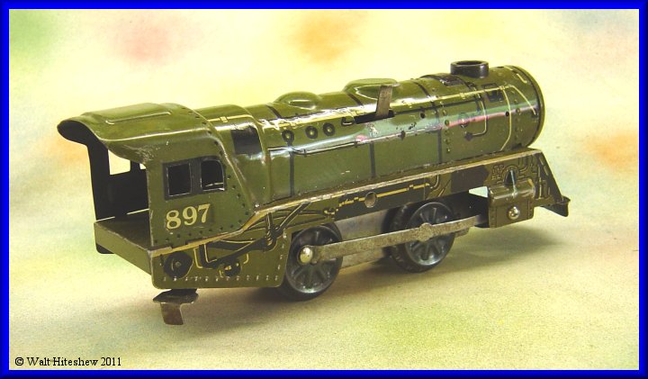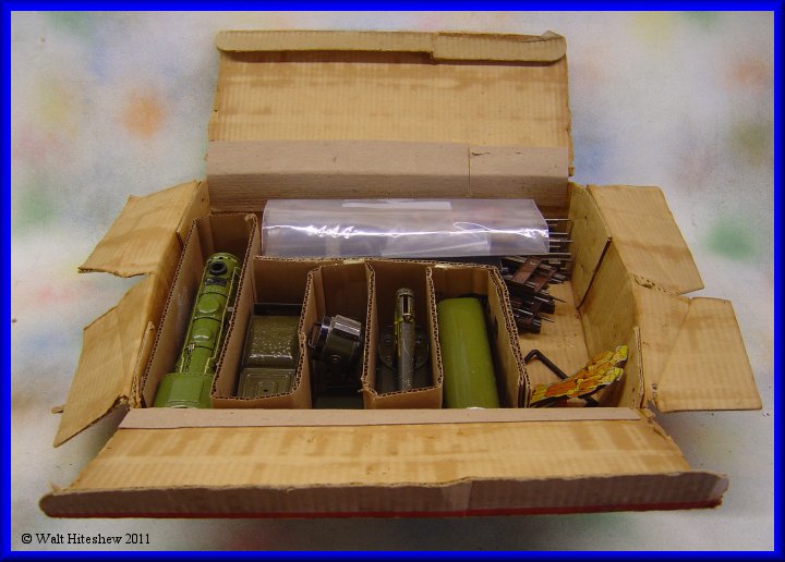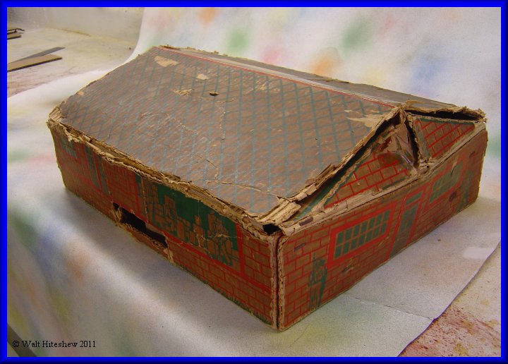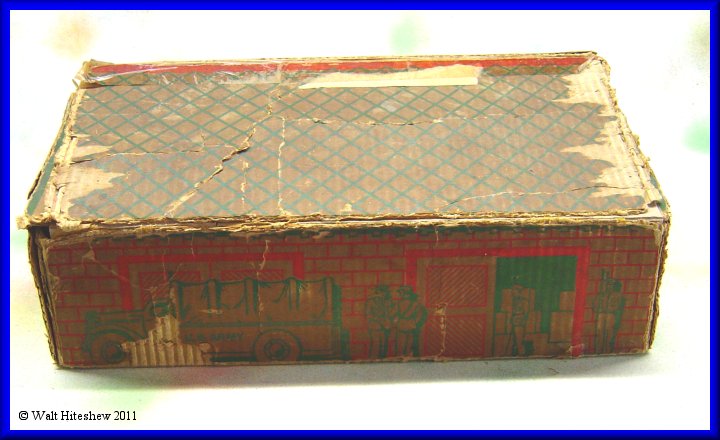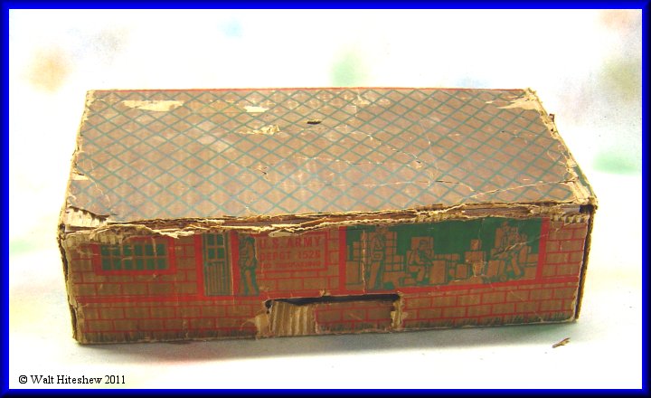 CONDITION-----Set grades between VERY GOOD and EXCELLENT. Train shows light playwear. Flag and pole are there with the original staples. Five of the seven tin soldiers and three of the four original artillary shells (I don't believe the gold one is correct). Track shows light oxidation. The odd piece of steel was in the box. I don't believe it's original with the set but I'm keeping the contents together as found. All-in-all this is one nice set. Very hard to assemble or find complete. The box is all there even though it has seen better days. Don't hesitate to add this to your collection today.