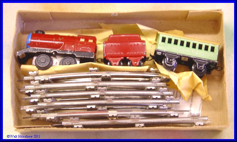 NOTE--------------Interesting and Very Rare set from Eastern Europe. Nominally S gauge. Painted metal construction with plastic wheels.