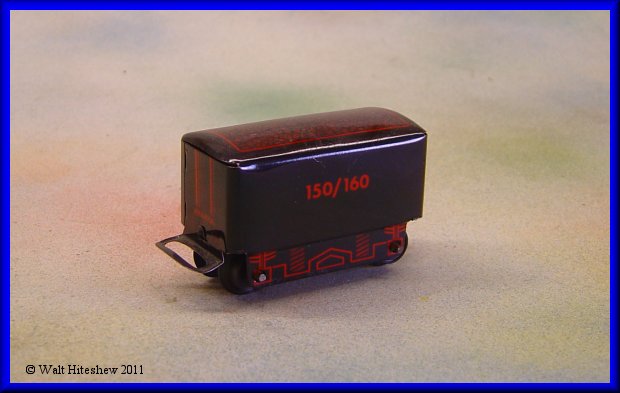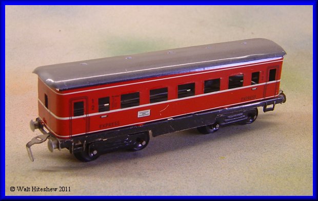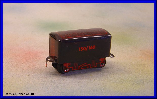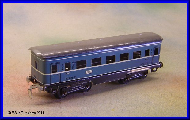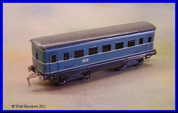 NOTE--------------Adorable little postwar HO gauge German set Set measures 20" total. Cars have articulated trucks (or bogies in the European parlance).