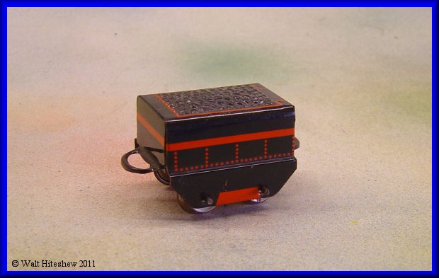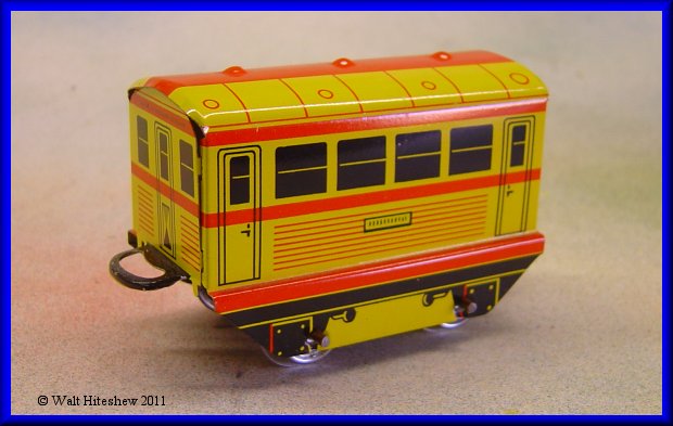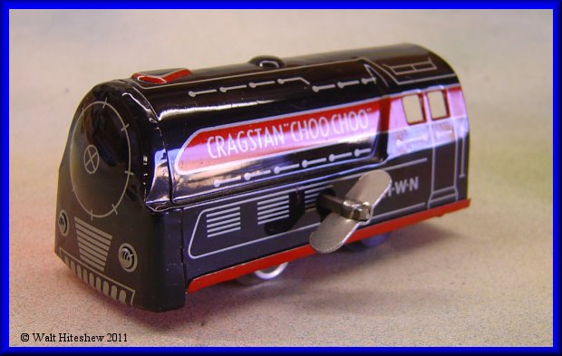 NOTE--------------Adorable little postwar German set with track. Gauge is just smaller than O measuring just over 1-1/8". Set is tiny measuring 9" total. Imported by Cragsten.