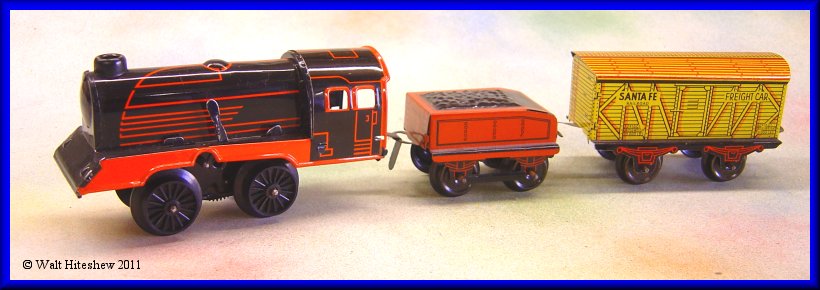 NOTE--------------Adorable little postwar O gauge German set put together from accumulated pieces. This set probably is legit but I purchased the items separately. The consist is similar to boxed sets I have in my collection. Set measures 13-1/2" total.