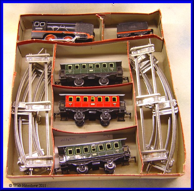 NOTE--------------Beautiful O gauge German set with larger cars. Coaches measure approximately 6".