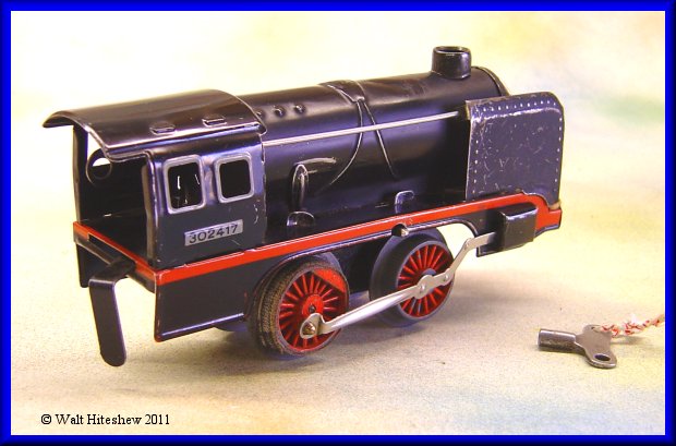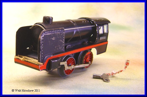 CONDITION-----EXCELLENT MINUS. Set shows minor signs of playwear. Slightly been roof corners, very light scratching, light oxidation to track. Box top has waterstain and has been reinforced with cardstock at three corners. Still, a beautiful example of West German toy train manufacture of the export market.