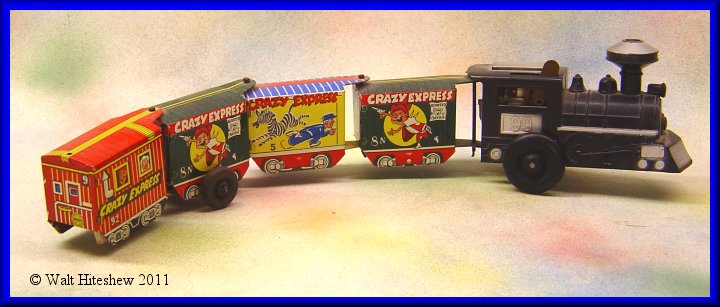 NOTES-------------Battery powered. 17" long, 4 cars, with No. 99 engine. In twenty plus years of collecting Marx trains and toys I have never seen another one of these. My friends, Trip Riley, Tasker Brush, and Dick MacNary had also not seen one!