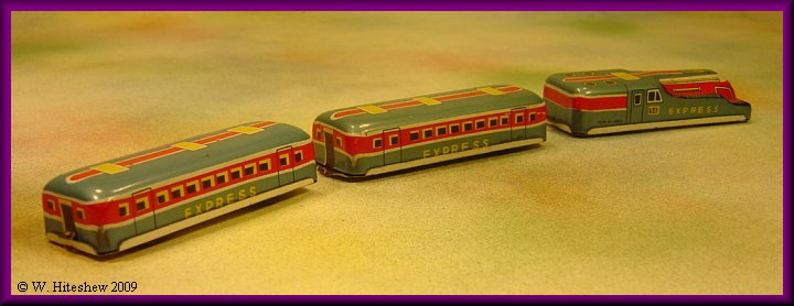 NOTES-------------Cote little table top lithographed tin toy train. 10" long.