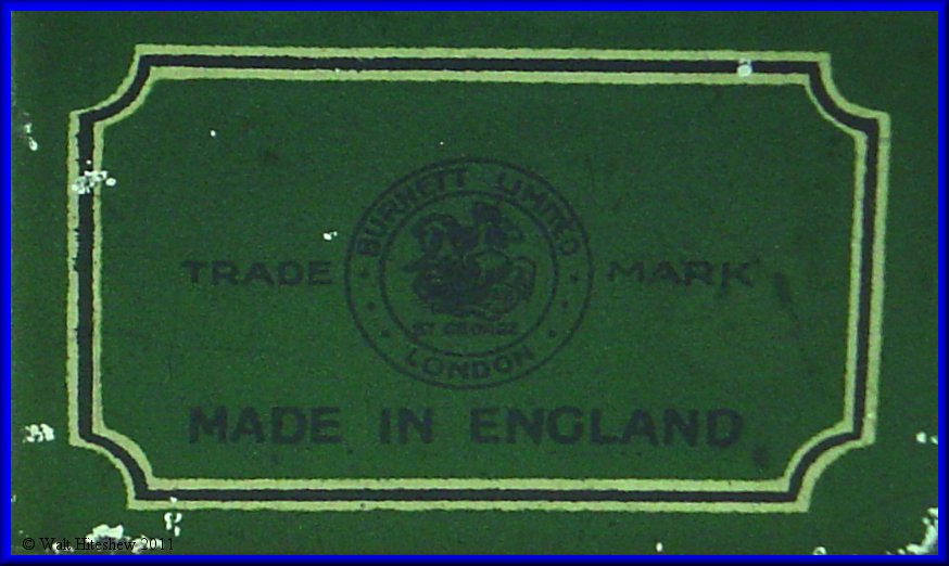 NOTES-------------Clockwork powered floor toy engine made England probably prewar, I would guess 1930's by the design. 10" LONG. Motor utilizes small wire coil spring typical of inexpensive toys from that era.